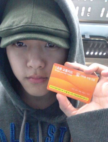 사진 속 동호는 1회용 전철 교통카드를 손에 들어 보이며 전철을 탑승했다는 것을 증명했다. 그는 신분노출을 방지하기 위해 모자, 후드티셔츠를 착용했다.