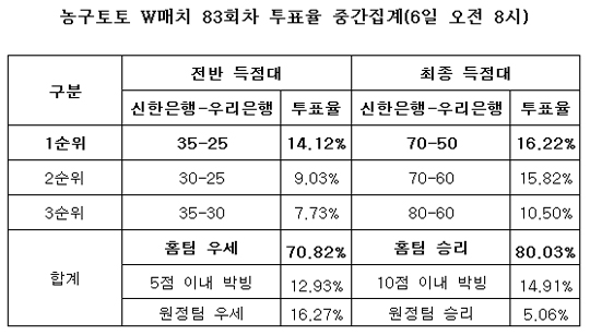 2011-2012시즌 농구토토 W매치 83회차 투표율 중간집계 결과