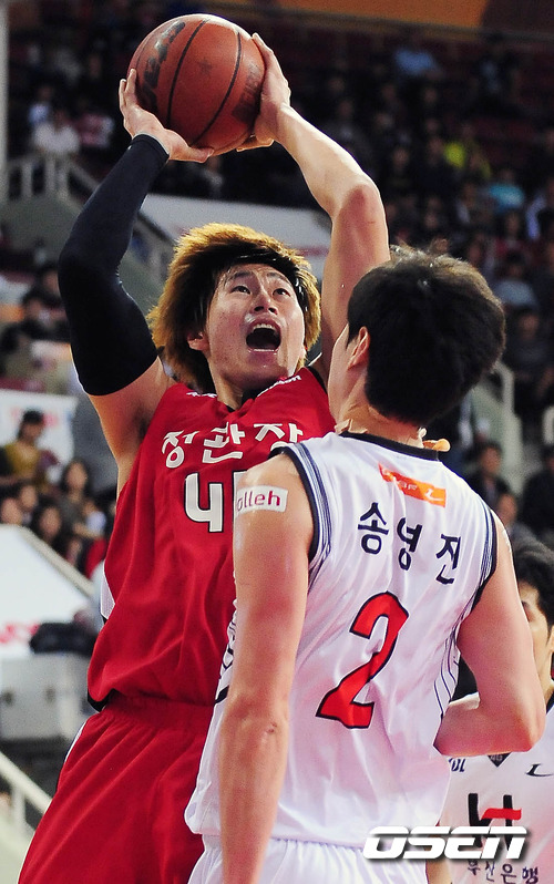 [OSEN=안양실내체 ,백승철 인턴기자] 6일 오후 안양 실내체육관에서 열린 '2011-2012 KB국민카드 프로농구' 안양 KGC 인삼공사와 부산 KT의 경기 1쿼터 인삼공사 오세근이 골밑슛을 시도하고 있다.