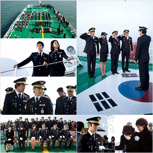 무엇보다 이 장면은 실제 대한민국 해양 경찰청의 전폭적인 지원을 받은 엄청난 스케일을 자랑하며 해양 드라마로의 진수를 보였다는 평가. 3000톤급 함정뿐 아니라 헬기, 해경군악대, 해경 조총대와 실제 해경 100여 명이 동원돼 현장감을 높였다. 총 200여명이 넘는 출연진들이 펼치는 바다 위의 장관은 흡사 블록버스터 영화 촬영장을 방불케 했다는 후문.