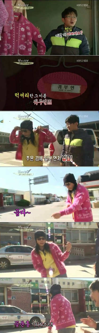 재료를 모두 구입한 윤형빈은 옷 가게를 지나면서 김태원에게 시장표 옷을 추천했고, 이를 본 김태원은 "경규형에게 갖다 줄 것이니 싸게 달라"고 하며 구입했다.