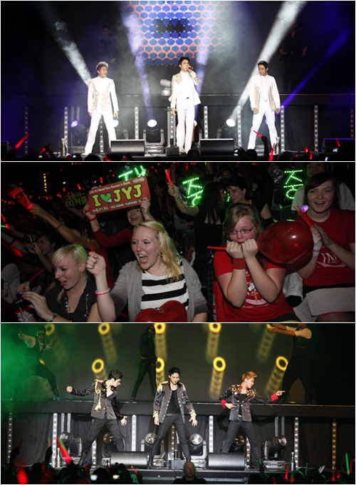 JYJ도 열정적인 응원에 최선의 무대를 선보였다. 월드 와이드 앨범의 타이틀인 '엠티(EMPTY)'와 '에이걸(Ayyy girl)'에서 화려한 안무와 라이브를 선보인 JYJ는 이번 한국어 앨범의 타이틀곡인 '인 헤븐(In heaven)'과 '겟 아웃(Get out)'에서 폭발적인 가창력을 선보이며 유럽 팬들을 감동을 선사 했다.
