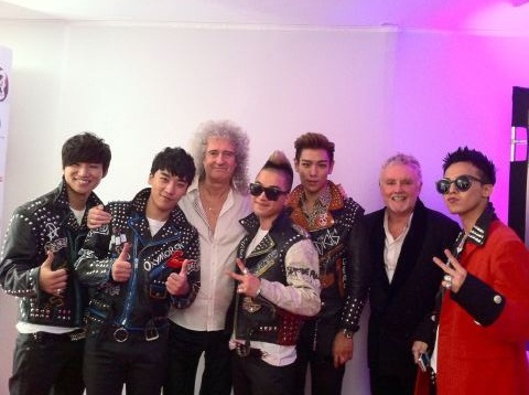 아이돌그룹 빅뱅이 전설의 록그룹 퀸과 함께 찍은 사진을 공개해 눈길을 끌고 있다.
