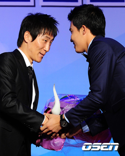 신인왕 후보였던 임찬규(19, LG 트윈스)가 자신과 경쟁했던 '신인왕' 배영섭(25, 삼성 라이온즈)에게 꽃다발을 전달하는 따뜻한 모습을 보였다.