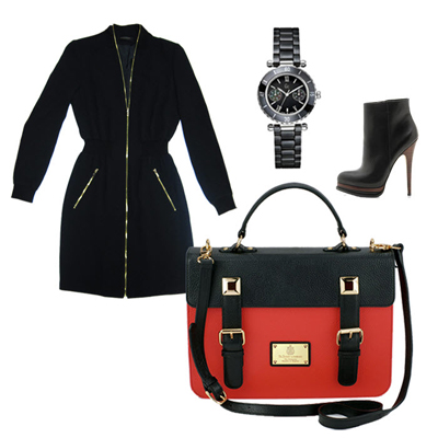 한 가지 컬러로 포인트를 주고 싶다면 기본 컬러로 블랙을 꼽는 것이 가장 무난하다. 시크 무드를 드러내기에 적합한 컬러가 바로 블랙이기 때문이다. 점퍼 스타일의 블랙 원피스는 포멀한 듯 캐주얼한 느낌을 준다. 여기에 블랙 세라믹 워치로 모던함을 더하고 심플한 부티로 여성의 자존심을 지킨다.