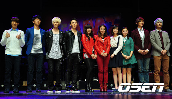 7일 오후 서울 종로구 동숭아트센터 동숭홀에서 열린 뮤지컬 '페임'의 쇼케이스에서 포토타임중 손호영 고은성 은혁 김찬호 티파니 신의정 린아 최주리 이일근 정모가 포토타임을 갖고 있다.