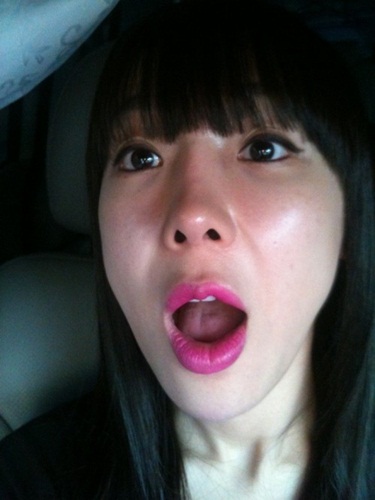 사진 속 이지혜는 카메라를 클로즈업 한 상태이지만 잡티가 보이지 않는 깨끗한 피부를 자랑했으며, 분홍색 립스틱 컬러와 입을 벌린 표정이 발랄한 그의 분위기와 잘 어울리는 모습이다.