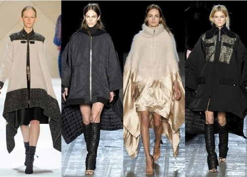 지난해부터 붐을 일으켰던 케이프와 판초스타일. 두 스타일의 어원은 다르나 걸치는 것이라는 공통점을 가지고 있다. 케이프는 보온용으로 가볍게 걸치는 것부터 시작되었으며, 판초는 넓은 원단에 머리가 들어 갈 정도의 구멍을 뚫어 걸치는 스타일이다.