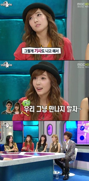 제시카는 택연과의 데이트 장면이 찍힌 사진에 관련한 대화를 나누던 중 “둘이 공개 연인인가?”라는 MC 김구라의 질문에 “그냥 친구다. 단 둘이 만난 것은 맞다”라고 솔직하게 답했다.