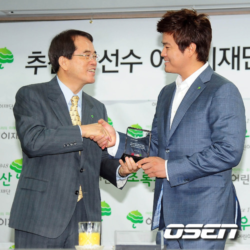 [OSEN= 백승철 인턴기자] '추추트레인' 추신수(29, 클리블랜드 인디언스)가 10일 오전 서울 무교동 어린이재단 대회의실에서 열린 '추신수 선수 어린이재단 홍보대사 위촉식'에 참석 이제훈 어린이재단 회장으로 부터 위촉패를 전달 받고 있다.