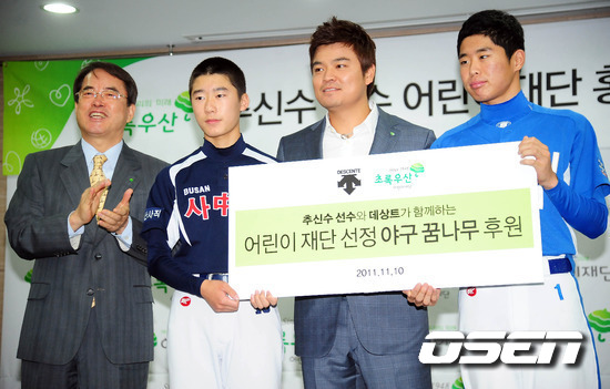 이날 홍보대사 위촉식에는 클리브랜드 인디에나 추신수 선수를 롤 모델로 삼고 있는 어린이재단 야구 꿈나무 김신호 군(15)과 김영환 군(15)이 함께 참석해 자리를 빛냈다.