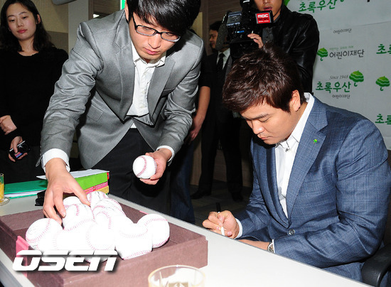 [OSEN= 백승철 인턴기자] '추추트레인' 추신수(29, 클리블랜드 인디언스)가 10일 오전 서울 무교동 어린이재단 대회의실에서 열린 '추신수 선수 어린이재단 홍보대사 위촉식'에 참석, 야구공에 사인을 하고 있다.