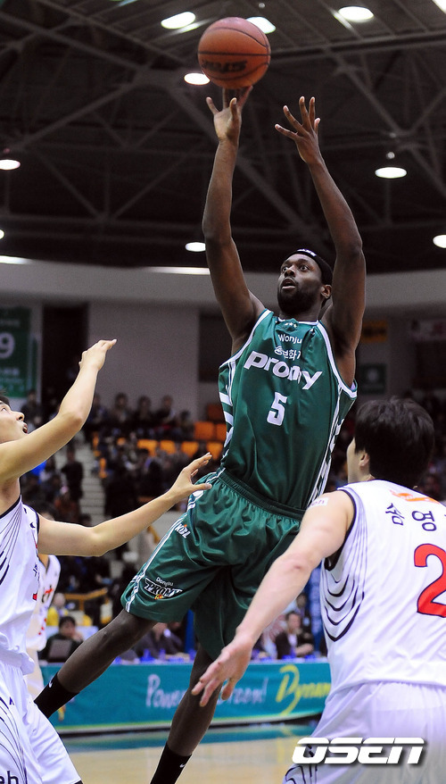 [OSEN=원주 ,백승철 인턴기자] 10일 오후 원주 치악체육관에서 열린 '2011-2012 KB국민카드 프로농구' 원주 동부 프로미와 부산 KT 소닉붐의 경기 1쿼터 동부 로드 벤슨이 골밑슛을 하고 있다.