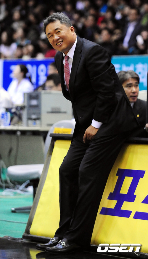 [OSEN=원주 ,백승철 인턴기자] 10일 오후 원주 치악체육관에서 열린 '2011-2012 KB국민카드 프로농구' 원주 동부 프로미와 부산 KT 소닉붐의 경기 2쿼터 KT 전창진 감독이 경기를 바라보고 있다.
