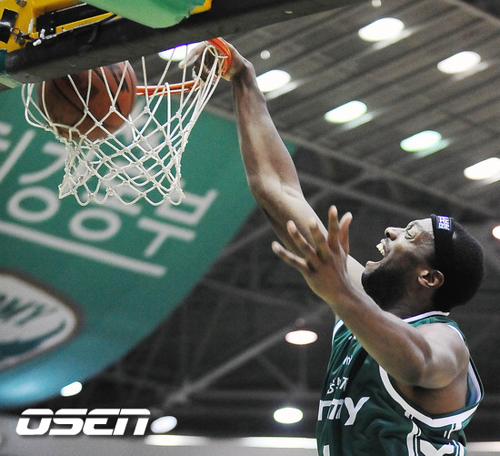 [OSEN=원주 ,백승철 인턴기자] 10일 오후 원주 치악체육관에서 열린 '2011-2012 KB국민카드 프로농구' 원주 동부 프로미와 부산 KT 소닉붐의 경기 2쿼터 동부 로드 벤슨이 덩크슛을 하고 있다.