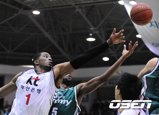 [OSEN=원주 ,백승철 인턴기자] 10일 오후 원주 치악체육관에서 열린 '2011-2012 KB국민카드 프로농구' 원주 동부 프로미와 부산 KT 소닉붐의 경기 2쿼터 KT 로드와 동부 로드 벤슨이 리바운드 다툼을 하고 있다.