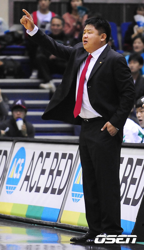 [OSEN=원주 ,백승철 인턴기자] 10일 오후 원주 치악체육관에서 열린 '2011-2012 KB국민카드 프로농구' 원주 동부 프로미와 부산 KT 소닉붐의 경기 3쿼터 동부 강동희 감독이 선수들에게 지시를 내리고 있다.