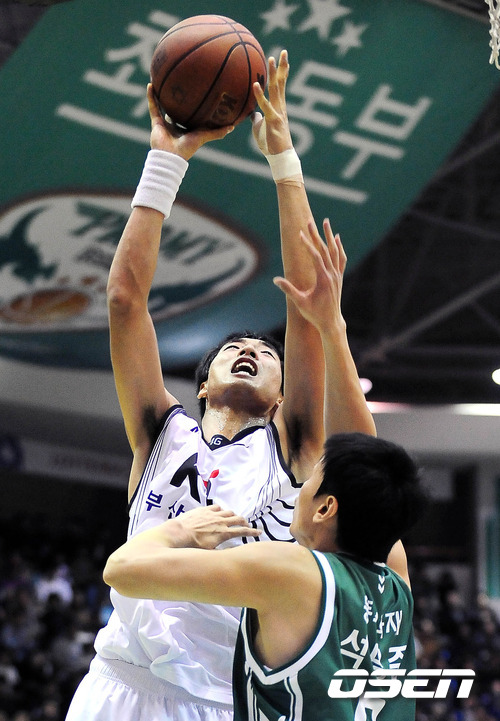 [OSEN=원주 ,백승철 인턴기자] 10일 오후 원주 치악체육관에서 열린 '2011-2012 KB국민카드 프로농구' 원주 동부 프로미와 부산 KT 소닉붐의 경기 4쿼터 KT 김현민이 골밑슛을 하고 있다.
