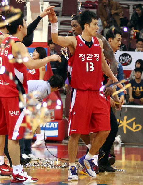 한편 이날 6득점에 그쳤지만 골밑에서 상대 빅맨 서장훈(7득점 6리바운드)과 애론 헤인즈(23득점 8리바운드)를 철저하게 막아내며 14리바운드를 기록한 신인 오세근에 대해서는 "우리 팀은 다른 선수들이 부상을 당해도 전력 쏠림이 없지만 오세근만은 제외다. 오세근이 있기 때문에 골밑 득점과 도움 수비, 리바운드에서 앞선다. 그런 부분에서 경쟁력이 있다"며 "오세근은 신인왕급이 아니다. 몇 년에 한 번 나오는 선수다. 김주성급이다"고 칭찬을 아끼지 않았다.