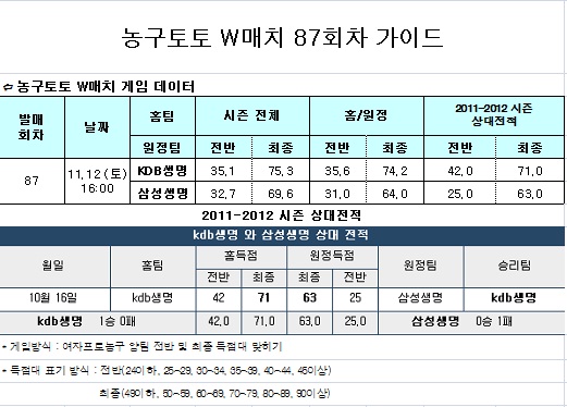 [농구토토] 국내 농구팬들은 2011-2012 여자프로농구 KDB생명-삼성생명전에서 양 팀간 치열한 접전을 예상했다.