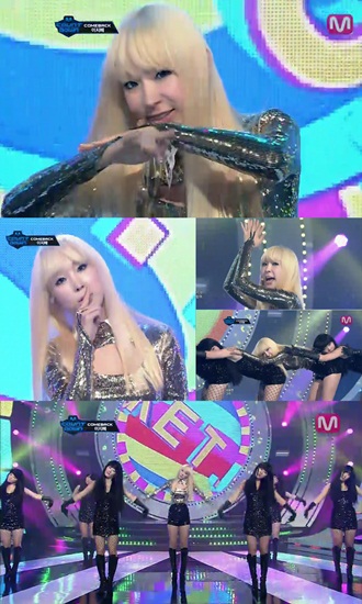 지난 10일 오후 방송된 ‘엠카’에 출연한 이지혜는 최근 발매한 싱글 앨범 타이틀곡 ‘로켓 파워’를 열창했다.