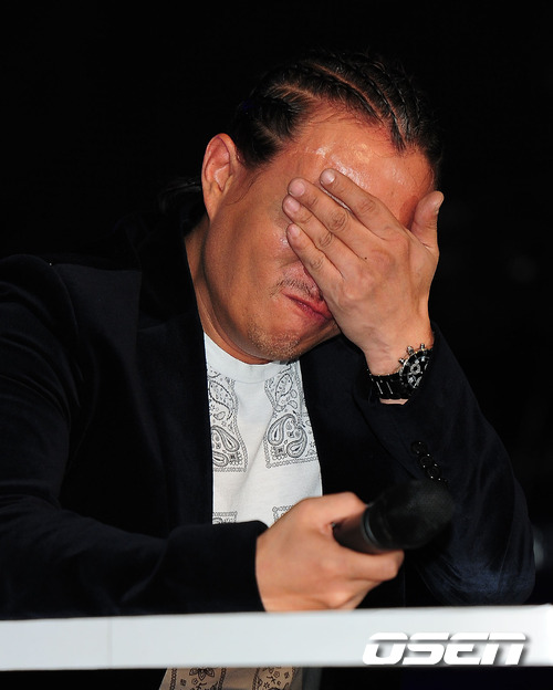 11일 오후 서울 강남구 논현동의 한 클럽에서 열린 SBS플러스 '컴백쇼 톱10' 기자회견 및 촬영현장 공개 행사에서 김성수가 폭행혐의에 대한 입장을 밝히며 눈물을 흘리고 있다.