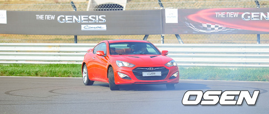 12일 전라남도 영암군 삼호읍 영암 코리아 인터내셔널 서킷 상설트랙에서 열린 ‘코리아 스피드 페스티벌(KSF)’ 최종전에서 신형 제네시스 쿠페가 드리프트 시범을 보이고 있다.