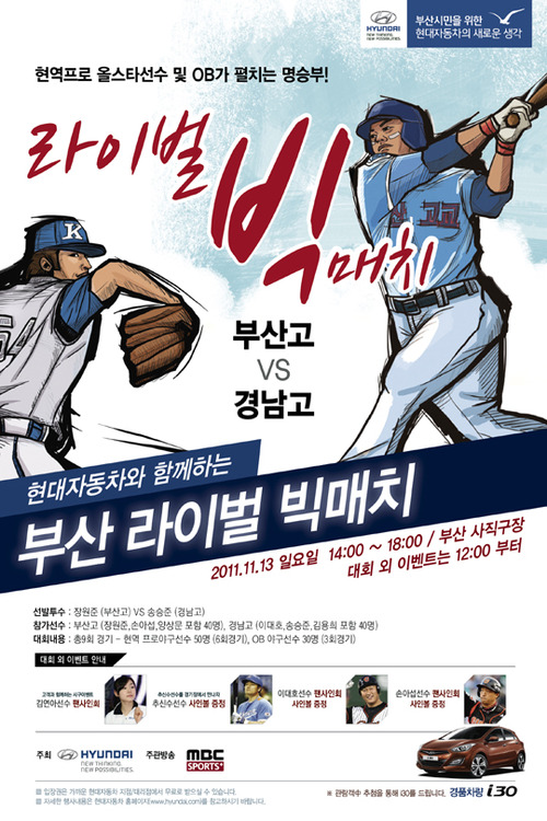 역시 스포츠는 라이벌이 있어야 재미있는 법인가 봅니다. 고인이신 조성옥 감독의 영정 앞에서 필승을 다짐한 부산고 출신 선수들이 13일 어떤 멋진 플레이로 라이벌 경남고를 상대할지 기대됩니다. 마찬가지로 경남고 출신의 이대호, 송승준, 임경완(이상 롯데) 등은 또 제각기 어떤 마음으로 경기에 나설지 궁금하네요.