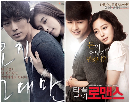 로맨틱 코미디 ‘티끌모아 로맨스’의 달달 커플 한예슬, 송중기가 ‘오직 그대만’의 소지섭 한효주 커플과 같은 포즈로 찍은 포스터를 공개해 눈길을 끈다.