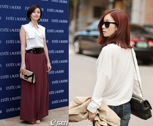 최근 공식석상에서 최정윤은 소매가 없는 화이트 셔츠에 발목까지 내려오는 스커트 느낌이 나는 와인색 와이드 팬츠를 입어 도회적인 매력을 풍겼다.