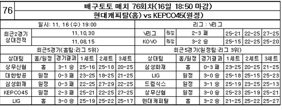 배구토토 매치 76회차 게임은 경기시작 10분전인 16일 오후 6시 50분에 발매가 마감되며 경기가 모두 종료된 후에 결과가 공식 발표된다.