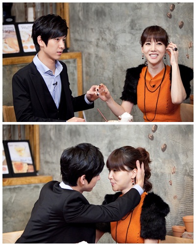 사진 속 김혜진은 입술에 커피 거품을 묻히고 한 남성과 마주 앉아 드라마 ‘시크릿 가든’의 거품키스 장면을 연출하고 있다.