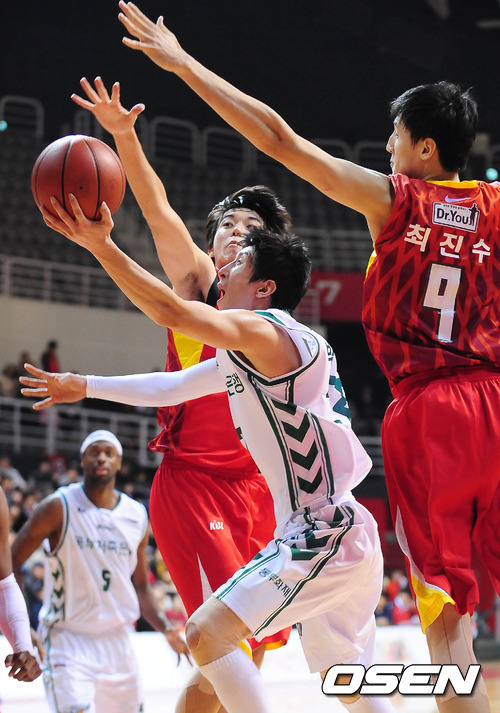 17일 오후 고양시 고양체육관에서 열린 '2011-2012 KB국민카드 프로농구' 고양 오리온스와 원주 동부의 경기 4쿼터 동부 박지현이 레이업슛을 시도하고 있다.