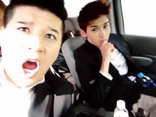 사진 속 신동은 검은색 정장을 갖춰 입은 채 사진을 찍고 있다. 단정한 옷과는 다르게 입을 크게 벌리고 장난끼넘치는 표정을 짓고 있어 웃음을 자아낸다. 그의 뒤로는 같은 멤버 려욱이 멋있는 포즈를 취하며 카메라를 바라보고 있다.