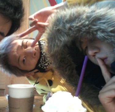 그룹 더블에이의 멤버 아우라와 김치가 커피숍에서 찍은 사진을 공개했다.