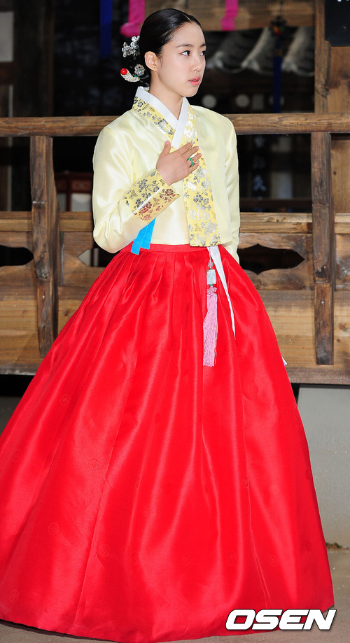 18일 오후 경기도 이천시 무대마당 스튜디오에서 열린 jTBC 개국 주말 특별기획드라마 '인수대비'의 촬영현장에서 어린 인수대비 역을 맡은 함은정이 앞으로 걸어나오고 있다.