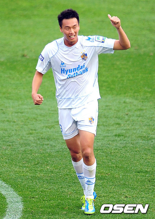 [OSEN=손용호 기자,서울월드컵경기장] 2011 K-리그 6강플레이오프 첫 경기 FC 서울-울산 현대 전반 울산 김신욱이 팀의 두번째 골을 넣고 환호하고 있다.