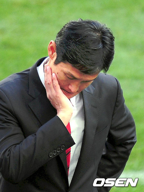 [OSEN=손용호 기자,서울월드컵경기장] 2011 K-리그 6강플레이오프 첫 경기 FC 서울-울산 현대 전반 0-2로 뒤지고 있는 서울 최용수 감독이 인상을 찡그리고 있다.