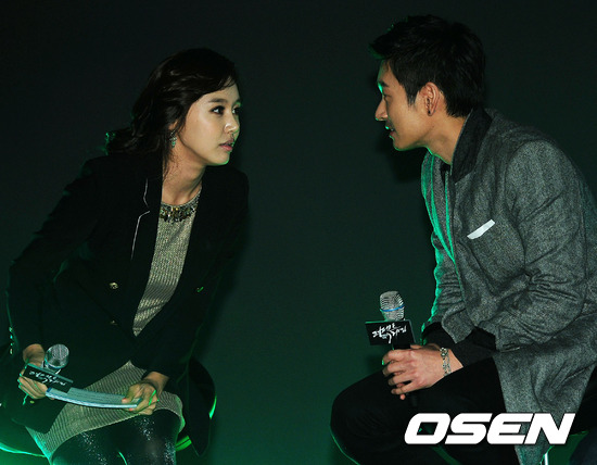 사회를 맡은 김민아 아나운서와 조승우가 이야기를 나누고 있다.