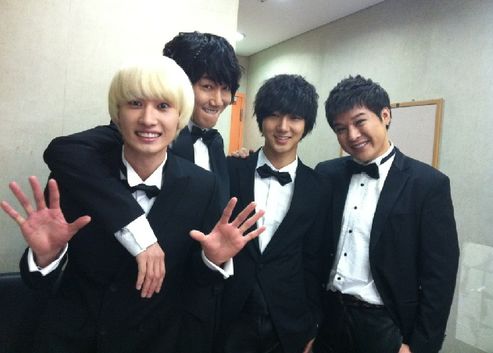 사진 속 김장훈은 슈주 멤버 은혁, 예성, 신동과 함께 턱시도를 맞춰 입고 다정하게 포즈를 취했다. 또한 다함께 장난기 넘치는 표정을 지어 선후배 사이를 떠나 친구처럼 편한 모습을 연출했다.