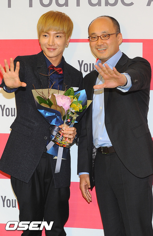 22일 오후 서울 강남 역삼동 강남파이낸스센터에서 진행된 '2011 유튜브 어워즈 시상식'에서 그룹 슈퍼주니어 이특이 k-pop어워즈를 수상한 뒤 포즈를 취하고 있다.
