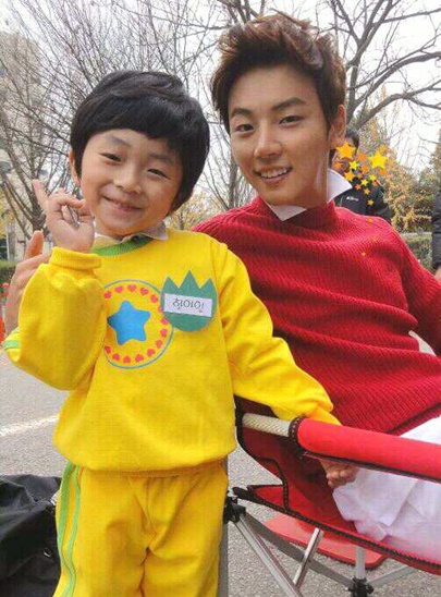 윤시윤은 21일 자신의 트위터를 통해 '일일 아빠되기!! ㅋ 잘어울리나요?'라는 글과 함께 극 중 화영(한고은 분)의 아들로 출연중인 아역배우 홍현택군과 함께 찍은 사진을 공개했다.