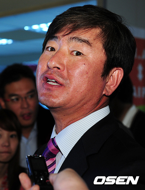 2011 아시아시리즈 우승에 도전하는 한국 대표 삼성 라이온즈가 23일 오전 대만 타이베이의 타오위안공항에 도착, 류중일 감독이 입국장을 나서며 인터뷰를 하고 있다.