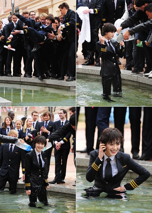 이 촬영은 지난 17일 진행된 극 중 항공학교(Redbaron Airline Academy of San Francisco)의 분수대에서 진행됐다.