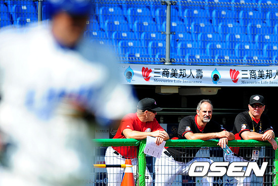 호주 퍼스 히트 브루크 나이트 감독을 비롯한 코칭스태프가 삼성 최형우를 지켜보고 있다.