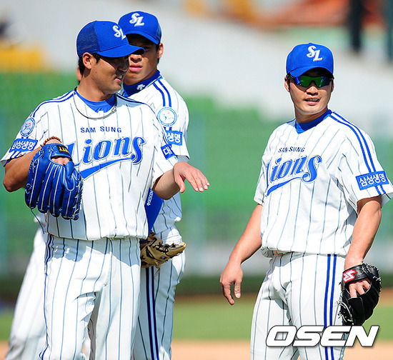 삼성 장원삼과 오승환이 이야기를 나누고 있다.