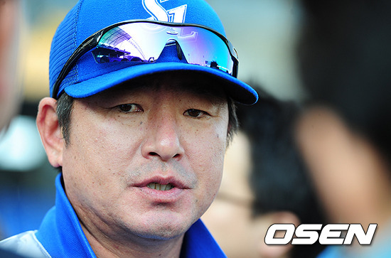 삼성 류중일 감독이 취재진과 인터뷰를 하고 있다.