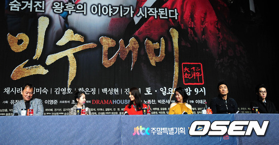 [OSEN = 백승철 기자] 24일 오후 서울 서초동 국립국악원 예악당에서 열린 jTBC 드라마 '인수대비' 제작발표회에서 출연진들이 취재진들과 질의응답 시간을 갖고 있다.