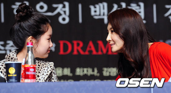 [OSEN = 백승철 기자] 24일 오후 서울 서초동 국립국악원 예악당에서 열린 jTBC 드라마 '인수대비' 제작발표회에서 채시라와 진지희가 이야기를 나누고 있다.