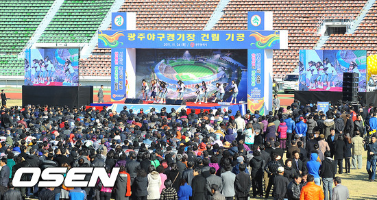 24일 오후 전남 광주시 임동 무등경기장 종합경기장에서 열린 광주 새 야구경기장 기공식에서 축하무대가 펼쳐 지고 있다.